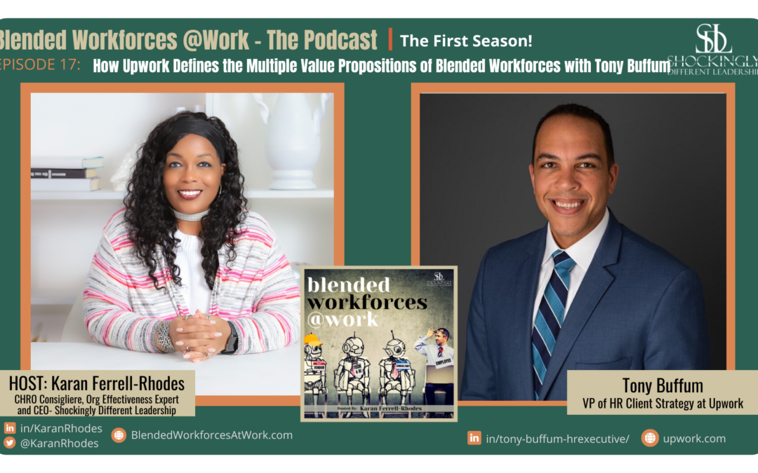 Blended workforces are one of the hottest talent strategies today, where employers are using a mix of traditional employees with external resources like independent contractors, coaches, consultants, vendors, and technology solutions, all in order to enhance competitiveness, ensure cost flexibility, and expedite business goals. But how are the successful companies infusing blended workforces into their business strategy? And what are the critical success factors and pitfalls to avoid during implementation? And on the flip side, what does it really take for suppliers to improve their chances of finding and landing contract opportunities? The devil is in the details, my friends! I’m your host, Karan Ferrell Rhodes, and it’s time to get smarter about Blended Workforces at Work! Hello, my superstars This is Karan and welcome to another episode of the blended work versus at work podcast. We are so thrilled to have you join another episode. And, boy, you’re gonna be glad to listen to this episode because we have a tremendous guest on queue. On today’s show, we have Tony Buffum, who is the VP of HR client strategy at Upwork. And I know many of you are familiar about Upwork. For the few out there that may not be Upwork is a global marketplace where organizations can find and offer freelance jobs in various fields and skills. At Upwork, Tony is responsible for accelerating the growth of current and prospective Upwork enterprise level clients, helping them solve their HR related HR challenges related to finance, procurement, and talent transformation. Talk about the perfect guest for the Blended Workforces at Work podcast. He is the epitome because he sees how companies are leveraging external talent to help them grow and remain competitive. So welcome to the podcast. Tony.