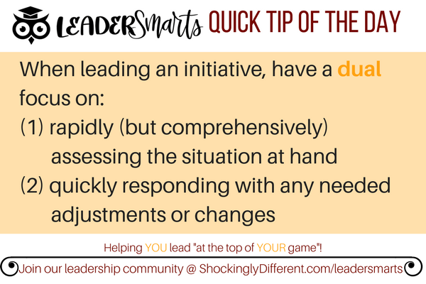 Let me explain why this dual focus is important. The world today doesn’t allow for 6 months of study and evaluation before making a decision. It is important that you quickly gather the data, facts and perspectives needed to make the most informed decision you can. Once a decision is made about the direction your initiative needs to take, don’t hesitate to begin putting your plans into action.