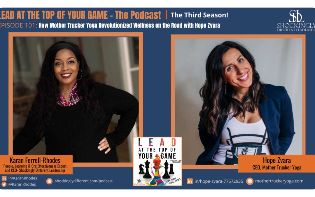 Hello, my superstars out there. This is Karen, and welcome to another episode of the lead at the top of your game podcast. I have a extremely special guest today. You know, one of the things we always try to do is to we do feature a lot of corporate leaders of big companies, but we always love to also feature leaders who are doing big things in their niche industries as well. And we have a doozy of a guest for you today. We’re so pleased to have on today’s show, Hope Zvara. I wanted to call her, mix the names up. I’m sorry. Her name is Hope Zvara. She is the CEO of Mother Trucker Yoga and the creator of the road relief wellness. Now, hope is seen as a leader in the trucking industry for health and fitness, and has been featured on many, many outlets such as PBS, Yahoo News, and she was also named in the Top 11 Women to Watch out for by LA Weekly, which is huge congrats for that. Now, if I’m honest, I never thought of equating trucking with wellness, although I knew truckers, we all need wellness in our lives, but I never thought of that combination as a niche. And I’m fascinated to hear from Hope about how she became a leader in this area, specialty and her journey. I’m sure there are tons of little nuggets of inspiration in there, but we want to welcome Hope to the show. So welcome Hope to our podcast episode.