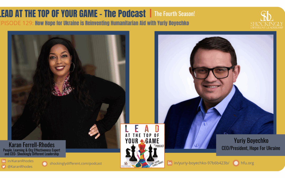 Hello, my superstars. This is Karen, and welcome to another episode of the lead of the top your game podcast. We have a absolutely tremendous guest for today’s show. I hope you’ll join me in welcoming Yuriy, and we can hopefully get his last name right, Boyechko. That’s as close as I’m going to get to it. Let him say it to clarify, but Yuriy Boyechko. He is the CEO and President of hope for Ukraine, which is a nonprofit organization that’s dedicated to supporting those in need Ukraine. And they do a ton of things to help support the Ukrainian population, among which they really focus on, well being everything from basic necessities to education and healthcare and more. If you haven’t had an opportunity to check out the show notes and see the links to his organization, I beg of you to please take a few minutes to do so, because they are doing absolutely fantastic work. And you know, no matter your political affiliation or worldview, we’re all human at the end of the day. And I really thought it was important to really highlight some fantastic leadership and work that is going on to help support the people of Ukraine. And so Yuriy is going to share his story and his organization with us today. So welcome to the podcast, Yuriy.