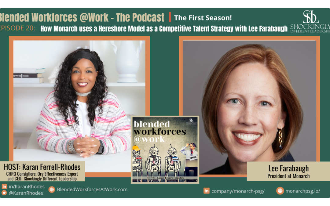 Blended workforces are one of the hottest talent strategies today, where employers are using a mix of traditional employees with external resources like independent contractors, coaches, consultants, vendors, and technology solutions, all in order to enhance competitiveness, ensure cost flexibility, and expedite business goals. But how are the successful companies infusing blended workforces into their business strategy? And what are the critical success factors and pitfalls to avoid during implementation? And on the flip side, what does it really take for suppliers to improve their chances of finding and landing contract opportunities? The devil is in the details, my friends! I’m your host, Karan Ferrell Rhodes, and it’s time to get smarter about Blended Workforces at Work! Hi there, my superstars out there. This is Karan, and welcome to another episode of the blended workforces at work podcast. We are super excited that you’ve joined us for another fabulous episode, and it’s a good one to tune into, because boy, do we have a fantastic guest today. I’m so happy to feature on today’s show Ms Lee Farabaugh play, I got that right. Farabah, who is the co founder and president of Monarch Professional Services Group, and they are a firm that provides implementation and Customer Success Services for leading financial service CRM and software as a solution platforms. I love this because I came from the tech world, so I’m super excited to talk to her about how she helps support their clients. But in her role, Lee oversees operations, service delivery, community relations, business development, sales, strategic, account management and marketing, and with all those responsibilities, I don’t know how she gets up every day, because I would be dead tired at the end of the day, but welcome to the show, Lee.