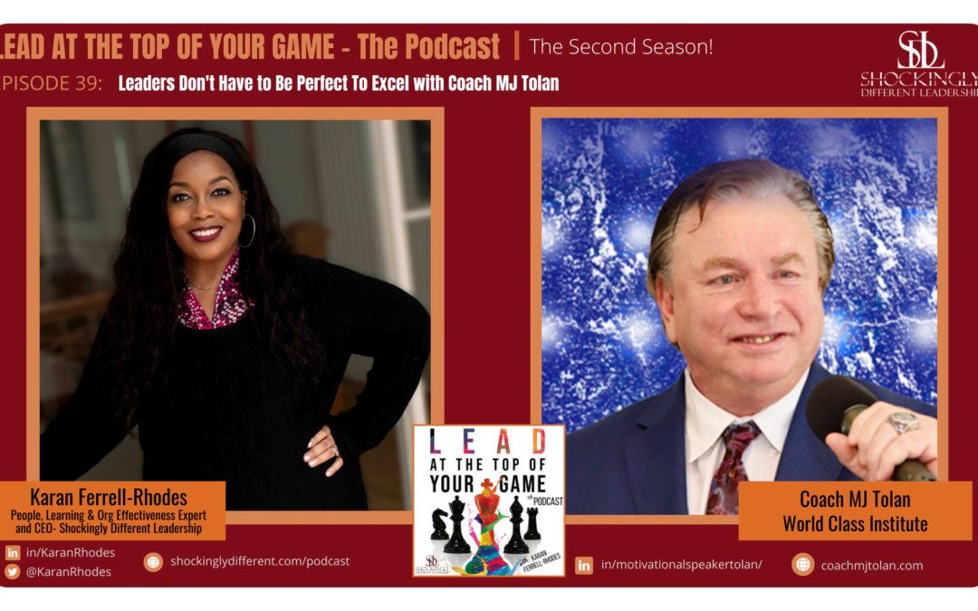 Awesome. All right, listeners. Thank you once again for listening to another episode. Please remember to subscribe. And also I only ask that to share with one additional friend because I’m sure there’s a tidbit or tip that will help them as well. I hope you have a fantastic rest of your week and see you next week. Take care. Well, I hope you enjoyed our conversation today with coach Michael MJ Tolan links to his bio is entered into our leadership playbook, and additional resources can be found in the show notes, both on your favorite podcast platform of choice, and on the web at leadyourgamepodcast.com. And now for Karan’s take on today’s topic of imperfect leadership. You know, traditional leadership models tend to portray leaders as being all things all people however, the tides are changing in today’s world. And so it’s a portrait of what a true leader really is. Leaning in these times of globalization, complexity and ambiguity demands new wide range capabilities and skills. And while we always may have imperfect tendencies, here’s some tips that will reduce the impact of the times when you find yourself not operating at your best one. Understand what drives your behaviors and actions. To become aware of your own needs first, so you can notice the needs of others. Three, escape conformity to lead with your values and what you believe in. Four, allow yourself to be vulnerable. It’s okay people are naturally drawn to those who are vulnerable. Five, acknowledge your both your strengths and your weaknesses. And six find the courage to rely on others to compensate for any many missing skills that you may have. Now, if you or your team is interested in learning more about effective leadership and action, and how to turn your skills into differentiators, check out our signature Lead at the Top of Your Game Assessment and workshops on the website at developingyourgame.com. And please remember to subscribe to the podcast and share with just one friend. Because doing this will allow us to extend our reach and help others just like you to lead at the top of their game. Thanks so much for listening and see you next week. And that’s our show for today. Thank you for listening to the lead at the top of your game podcast, where we help you lead your seat at any employer, business, or industry in which you choose to play. You can check out the show notes, additional episodes, and bonus resources, and also submit guest recommendations on our website at leadyourgamepodcast.com. You can follow me on Twitter, Facebook, Instagram, and LinkedIn by searching for the name Karan Rhodes with Karan being spelled K a r a n. And if you like the show, the greatest gift you can give would be to subscribe and leave a rating on your podcast platform of choice. This podcast has been a production of Shockingly Different Leadership, a global consultancy which helps organizations execute their people, talent development, and organizational effectiveness initiatives on an on-demand, project, or contract basis. Huge thanks to our production and editing team for a job well done. Goodbye for now.