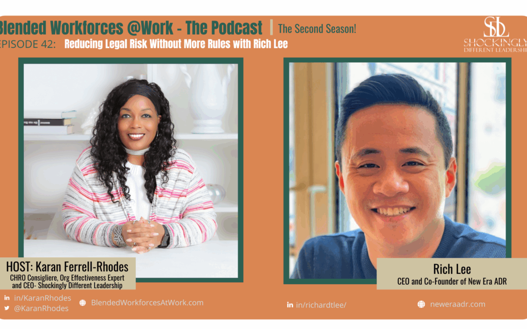 Blended workforces are one of the hottest talent strategies today, where employers are using a mix of traditional employees with external resources like independent contractors, coaches, consultants, vendors, and technology solutions, all in order to enhance competitiveness, ensure cost flexibility, and expedite business goals. But how are the successful companies infusing blended workforces into their business strategy? And what are the critical success factors and pitfalls to avoid during implementation? And on the flip side, what does it really take for suppliers to improve their chances of finding and landing contract opportunities? The devil is in the details, my friends! I’m your host, Karan Ferrell Rhodes, and it’s time to get smarter about Blended Workforces at Work!Hello, my superstars. This is Karan, and welcome to another episode of the blended workforces at work podcast. We have a tremendous guest on today’s show, and I just can’t wait to delve deep and get his perspectives. But on today’s show, we do have Rich Lee, who is the co founder and CEO of New Era ADR. And New Era ADR is a VC backed technology company that is bringing more predictability to the legal dispute process with up to 90% of reductions in time and cost. Now, new era, ADR is a wonderful example of how organizations are using technology to positively impact the way they work, and I can’t wait to talk to rich about their impact on the legal profession. So welcome to the show, Rich.