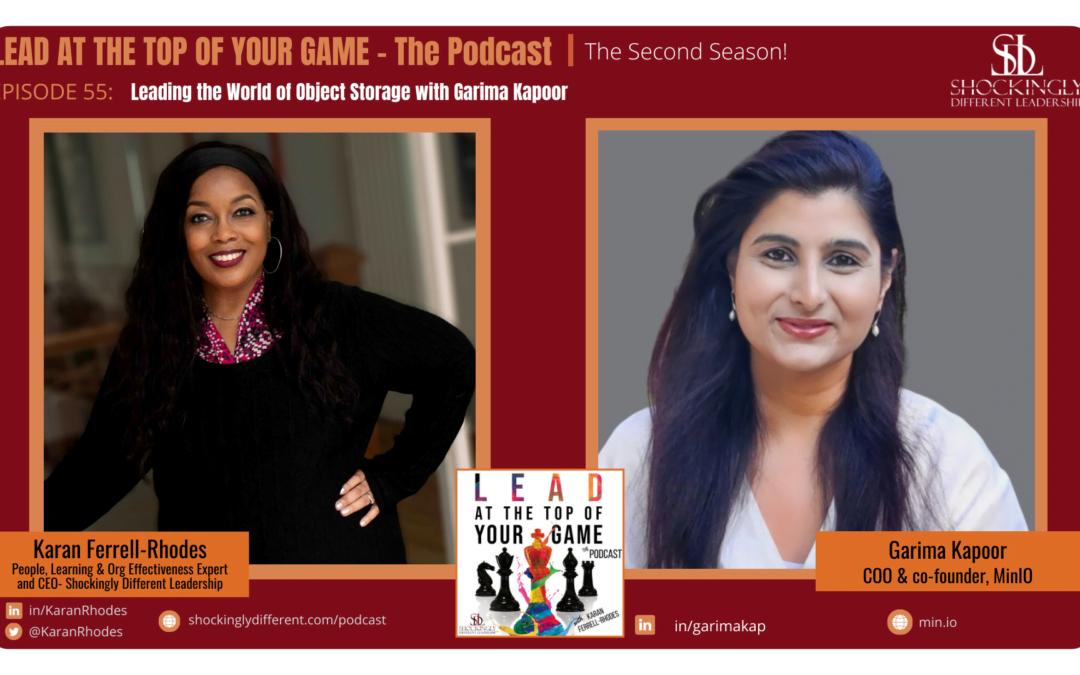 bsolutely.. And thank you listeners as well for joining in. Um, you know, I only ask that you like and subscribe to the podcast and share with just one friend. Because when you do that helps us extend our reach and helps others just like you to lead at the top of your game. Thank you so much again, and see you next week. Well, I hope you enjoyed our conversation today with Garima Kapoor, the Chief Operating Officer and co founder of MinIO, links to her bio her entry into our leadership playbook. And additional resources can be found in the show notes, both on your favorite podcast platform of choice in on the web at lean your game podcast.com. And now for Karan’s take on today’s topic of finding your blue ocean. As I mentioned before, there’s no way I can talk Gareem on the topic of object storage. And I’m not even going to try however, there is a leadership lesson from her episode that I want to call to your attention. Most of you may be familiar with the book, The Blue Ocean Strategy. The key point in the book that they drive home is that you can accelerate the success of your business by looking for marketplaces or opportunities where there is little or no competition, but high demand. And what’s interesting is that this strategy has now been extended to multiple areas of leadership, not just for business owners currently use this strategy as she watched the world of big data evolve. She knew that the big players in the market were racing to gobble up the business of the Fortune 500 companies. However, she saw that providing the solution for middle sized and larger firms was a blue ocean of potential and very profitable, and I want you all to find your own blue ocean of opportunity. No matter your job or profession know that there is a blue ocean of opportunity for you to take advantage at shockingly different leadership. You know, we found two great markets, one for companies who are in need on demand support for their people and talent development functions, and the other for individuals and companies who desire to uplevel uplevel their leadership capability in a way that directly impacts the bottom line. So my challenge for today for you is to grab a cup of coffee or tea, find a quiet place and spend just 20 minutes brainstorming potential areas where there may be blue oceans of opportunity for you to capitalize on. And then I want you to take it a step further by setting aside some time in the next couple of days to flush out your thinking on your list of ideas and pick one to take action on so that you too can continue to lead at the top of your game. Remember, please do subscribe to the podcast and just share with just one friend. Because performing this one selfless act will empower you to help others who also lead at the top of their game. Thank you so much for listening and see you next week. And that’s our show for today. Thank you for listening to the lead at the top of your game podcast, where we help you lead your seat at any employer, business, or industry in which you choose to play. You can check out the show notes, additional episodes, and bonus resources, and also submit guest recommendations on our website at leadyourgamepodcast.com. You can follow me on Twitter, Facebook, Instagram, and LinkedIn by searching for the name Karan Rhodes with Karan being spelled K a r a n. And if you like the show, the greatest gift you can give would be to subscribe and leave a rating on your podcast platform of choice. This podcast has been a production of Shockingly Different Leadership, a global consultancy which helps organizations execute their people, talent development, and organizational effectiveness initiatives on an on-demand, project, or contract basis. Huge thanks to our production and editing team for a job well done. Goodbye for now.