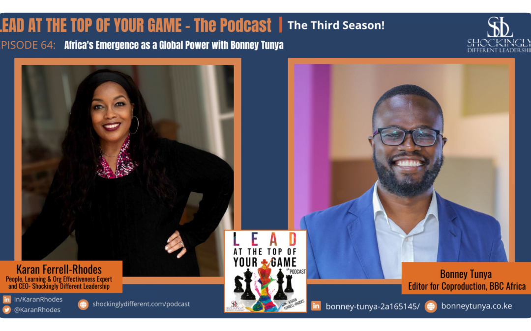 Absolutely. All right. And thank you to listeners for tuning in to another episode of Lead at the top of your game. Take care. Well, I hope you enjoyed our conversation today with Bonney Tunya, editor for CO production for BBC Africa. Links to his bio his entry into our leadership playbook. And additional resources can be found in the show notes built in on your favorite podcast platform of choice and on the web at leisure game podcast.com. And now for Karan’s take on today’s topic of global leadership in Africa. Now, I thought it may be helpful to help you better understand both the opportunities and the challenges that Africa faces as they continue to lead their seat on the global stage, that if your company or employer is not yet doing business in Africa, believe me, it may be just around the corner, because Africa is one of the last untapped opportunities for business expansion. So I want to help you become a bit more globally astute about what Africa’s rise may eventually mean for you. Now, in the shownotes, I want you to be sure to check out two resources. I have the links there. It’s too much to tell you about right here. But believe me, it’s some fantastic information. The first resource is World Bank’s take on the state of Africa. And in particular, I want you to learn more about Sub Saharan Africa, which is an extremely diverse region composed of low lower middle, upper middle and high income countries. But what’s interesting, out of all the countries there are 22 of which which are classified as fragile or conflict affected. However, this region boasts rich natural resources, the world’s largest free trade area and a 1.2 billion person market. Now we’ll note that growth remains and even across the whole continent of Africa grants as well. You know, East Africa has a growth rate of about 1.8% in 2023, West Africa is expected to grow at 3.3% this year, so quite a difference across the continent. The second resource I want you to check out is from the McKinsey Global Research Division, and is entitled reimagining economic growth in Africa, turning diversity into opportunity. Now, this article is absolutely pure goal, as it highlights how the GDP per capita is struggling how there is no quote unquote, one Africa, because of the divergence across the countries, and how Africa is the world’s fastest urbanizing region, but it depends too heavily on its primary cities, versus including its rural areas, just absolutely fascinating. So take a look at that article as well. But if I can leave you with anything, it is to get curious about the world, if you’re not already, there’s unlimited opportunity out there for you on a personal or business or career level. It may not be Africa, maybe it’s in Europe, or maybe it’s in South America or somewhere else. But just be open to the opportunities that the universe places in your path. And believe me, you will be so much the richer. Well, that’s all for today. Please remember to subscribe to the podcast and share it with just one friend because by doing so you will empower them to also lead it at the top of their game. Thanks again for listening and see you next week. And that’s our show for today. Thank you for listening to the lead at the top of your game podcast, where we help you lead your seat at any employer, business, or industry in which you choose to play. You can check out the show notes, additional episodes, and bonus resources, and also submit guest recommendations on our website at leadyourgamepodcast.com. You can follow me on Twitter, Facebook, Instagram, and LinkedIn by searching for the name Karan Rhodes with Karan being spelled K a r a n. And if you like the show, the greatest gift you can give would be to subscribe and leave a rating on your podcast platform of choice. This podcast has been a production of Shockingly Different Leadership, a global consultancy which helps organizations execute their people, talent development, and organizational effectiveness initiatives on an on-demand, project, or contract basis. Huge thanks to our production and editing team for a job well done. Goodbye for now.