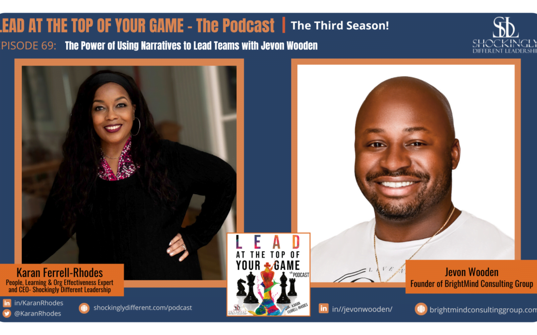 We’ll definitely do so. And thank you to listeners for joining another episode at the Lead at the Top of Your Game. As you know, we only ask that you like and follow our podcast and share with just one friend because by doing so that helps us reach our extend our reach and help others just like you delete at the top of your game. Thanks so much again for listening and see you next week. Bye bye. Well, I hope you enjoyed our conversation today, with Jevon wooden, founder of Brightmind Consulting Group links to his bio his entry into our leadership playbook. And additional resources can be found in the show notes both on your favorite podcast platform of choice and on the web at lead your game podcast.com And now for Karan’s Take on today’s topic of influential narratives. Now in addition to the great insights Jevon shared with us, I’d like to help you better understand the business case for using narratives when leading organizations and teams. First of all, leadership narratives add credibility. When leaders tell convincing and coherent stories, they are able to quickly establish credibility, relationships, and a sense of purposeful direction with those whom they seek to influence. Secondly, narratives are part of our human DNA narratives and stories are our natural medium of communication. Around 80% of our daily communications fall into the categories of storytelling, whether it be presentations, examples, anecdotes, or gossip. Did you know that the oldest written story is over 4000 years old, and stories in the oral tradition where they pass down information verbally, have been around for 10s of 1000s of years. Amazing, right? Our third point is narratives help in managing change. For Change To be effective, it has to happen simultaneously across three domains, what’s going on with ourselves, what’s going on with others, and what’s going on in the environment of the cultures in which we operate. Narratives play a vital part in this. And people become empowered only when their stories are given credence, and are rooted in reality. And then lastly, the contemporary research supports using narratives and leadership. There’s been a huge amount of contemporary research, particularly in the areas of neuroscience, psychology, sociology, and anthropology, that points to using narratives as the simplest, the most effective, the most powerful and the most memorable way to reach the hearts and minds of others. Human beings are hard wired stories, and because they are multi sensory, they stimulate and engage our ability to reason, our curiosity and our energy in ways that other forms of communication cannot even began to match. timely, relevant, well told narratives resonate in our minds and memories, and long after they were told they create emotional connections that give a visceral sense of what the feature changes we are co taught today sorry, that we’re proposing might actually look and feel like, basically in a nutshell, they help us make sense of ourselves and our world. Well, that’s all for today. Ladies and gentlemen, please remember to subscribe to our podcast and share the podcast with just one friend because by doing so, YouTube will empower them to also leave at the top of their game. Thanks so much for listening and supporting the show. and we’ll see you next week. And that’s our show for today. Thank you for listening to the lead at the top of your game podcast, where we help you lead your seat at any employer, business, or industry in which you choose to play. You can check out the show notes, additional episodes, and bonus resources, and also submit guest recommendations on our website at leadyourgamepodcast.com. You can follow me on Twitter, Facebook, Instagram, and LinkedIn by searching for the name Karan Rhodes with Karan being spelled K a r a n. And if you like the show, the greatest gift you can give would be to subscribe and leave a rating on your podcast platform of choice. This podcast has been a production of Shockingly Different Leadership, a global consultancy which helps organizations execute their people, talent development, and organizational effectiveness initiatives on an on-demand, project, or contract basis. Huge thanks to our production and editing team for a job well done. Goodbye for now.