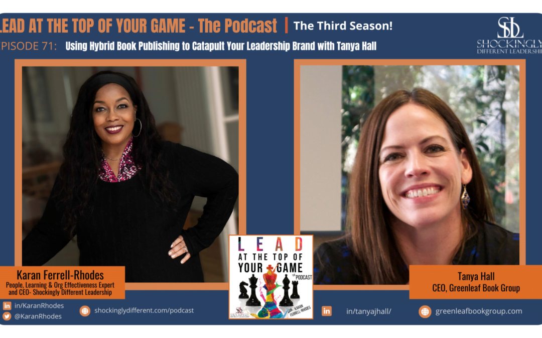 Welcome to the “Lead at the Top of Your Game” podcast, where we equip you to more effectively lead your seat at any employer, business, or industry in which you choose to play. Each week, we help you sharpen your leadership acumen by cracking open the playbooks of dynamic leaders who are doing big things in their professional endeavors. And now, your host, leadership tactics, and organizational development expert, Karan Ferrell-Rhodes. Welcome back, everyone, and thanks for joining another episode designed to help you better lead at the top of your game. Now, as you know for season three each month we’re featuring leaders who have interesting roles in a particular profession or industry. Today’s episode is part of our special series featuring leaders navigating in the digital world. And on today’s show, we’re featuring an expert who helps authors use the advances in digital publishing to help them become thought leaders in their niche. We’re proud to have Tanya Hall, who is the CEO of Greenleaf Book Group, one of the fastest growing and hybrid book publishing and distribution firms in the country. Now as an author myself, I was fascinated by Tany’s advice on how to best navigate some of the biggest misconceptions around birth in a book. And if I’m honest, I made a few of these mistakes myself that were on her list. But I’ll definitely not make the same mistakes twice as I work on number two. So if writing a book in the next few years is on your to do list, you will definitely not want to miss this episode. And also remember to stay tuned for just two minutes after the episode to listen to my closing segment called Karan’s Take, where I share a tip on how to use insights from today’s episode to further sharpen your leadership acumen. And now, enjoy the show. Hey there superstars! Welcome to another episode of the Lead at the Top of Your Game podcast. We are so pleased to have on today’s show. Miss Tanya Hall, CEO of the Greenleaf Book Group. And the Greenleaf Book Group is a hybrid book publishing firm that helps authors develop publishing strategies. And if they engage with Greenleaf to leverage some of great lease great relationships that they have developed, working directly with retailers and wholesalers to develop one of the fastest growing distribution businesses in the industry. Their whole concept is so wonderful. And because many of you as leaders have either written a book or have dreams of writing a book, we thought, Wow, what a great resources to bring on to the podcast to give you a sneak peek into what it all entails or how to take your next book if you’ve already written one to the next level. So welcome to the podcast, Tanya.