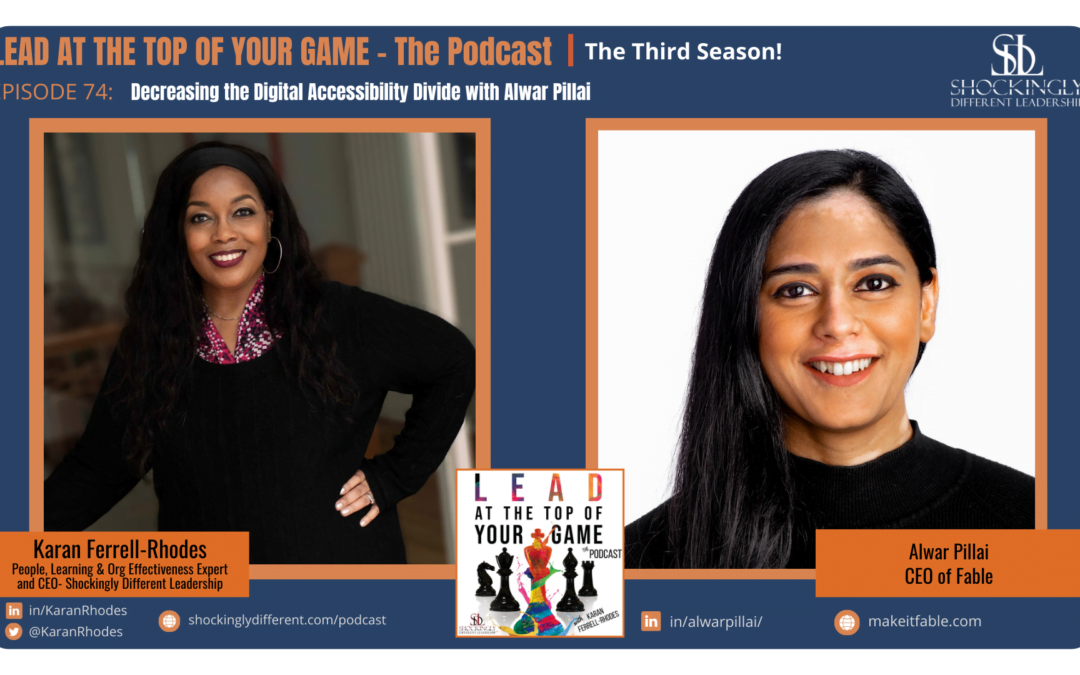 Welcome back to the podcast and thanks for joining us another episode designed to help you better lead at the top of your game. As you know for season three, each month we’re featuring leaders who have interesting roles in a particular profession or industry. Today’s episode is part of our special series featuring leaders navigating the digital world did you know that there are 1.5 billion people with disabilities in the world each one in this population has special challenges and using the tons of digital tools and websites that are out there is second nature to us, but difficult to many of them. But fortunately, there are companies whose mission is to decrease the accessibility gap. And we are fortunate to have one of the CEOs of such companies with us today. We’re thrilled to feature Alwar Pillai, who is the CEO and co founder of Fable, which is a company that is focused on transforming digital accessibility and inclusion Alvar is one of the few female founders who has raised more than 10 million in capital for their businesses. And she shares how fable is tackling the problem of a new term that I learned called Digital segregation in this return that kind of reflects how only 3% of the internet is digitally assessable. Despite how we met, we use online tools to run our daily lives. So please listen to me tips and perspectives of which I know will help you gain additional insights on how to help you lead at the top of your game. And now enjoy the show. Hey there superstars This is Karan and welcome to another episode of elite at the top of your game podcast. Now, I don’t know if you all remember but in Episode 19, we had a fantastic guest by the name of amber Hines who talked about digital accessibility in regards to technology, and how important it is for leaders in the workplace to make sure that the their technology is assessable for both their clients and their employees alike. Well, we have a similar episode but on steroids today, and so honored and pleased to have on today’s show, Miss Alwar Pillai, who is the CEO of Fable, and Fable’s, a company that is focused on transforming digital assist lability and inclusion. And I’m going to let her tell in detail or explain in detail what they do, because I will not do it justice. They’re doing some fantastic work at fable. But just know that Fable has worked with the likes of major players in the market, like Slack, Walmart, Shopify,Meta,and CVS Health. Oh var as well has been featured as one of the Forbes 50 I’m sorry, 30, under 30. I’m gonna try and age her…sorry! 30 under 30 awardee, so she is the real deal. And she’s one of the few female founders who has raised more than 10 million in capital. And for those of you who know, you know, one of my passions are around private equity and venture capital activity. Those of us in that space know how hard that is for female founders. So we want to give her kudos and her flowers on the day show as well. So welcome to the podcast Alwar.