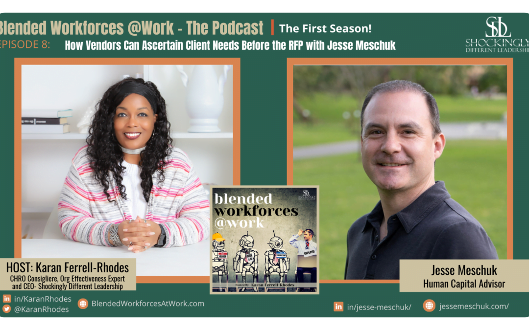 Blending workforces are one of the hottest talent strategies today, where employers are using a mix of traditional employees with external resources like independent contractors, coaches, consultants, vendors, and technology solutions, all in order to enhance competitiveness, ensure cost flexibility, and expedite business goals. But how are the successful companies infusing blended workforces into their business strategy? And what are the critical success factors and pitfalls to avoid during implementation? And on the flip side, what does it really take for suppliers to improve their chances of finding and landing contract opportunities? The devil is in the details, my friends! I’m your host, Karan Ferrell Rhodes, and it’s time to get smarter about Blended Workforces at Work! Hello, my dear superstars Welcome to another episode of the Blended Workforces at Work podcast. I have such an exciting guest today that we’re going to talk about all things pro and con about blended workforces, and I’m just absolutely thrilled to have on today’s show Jesse Meschuk Chuck. But he is principal at Exequity. And he has a lot of other specialties and expertise that you can learn more about him is at Jesse masscec.com. But he we grabbed his time so that he can talk with us about blended workforces today. So welcome to the sheds. YesI.