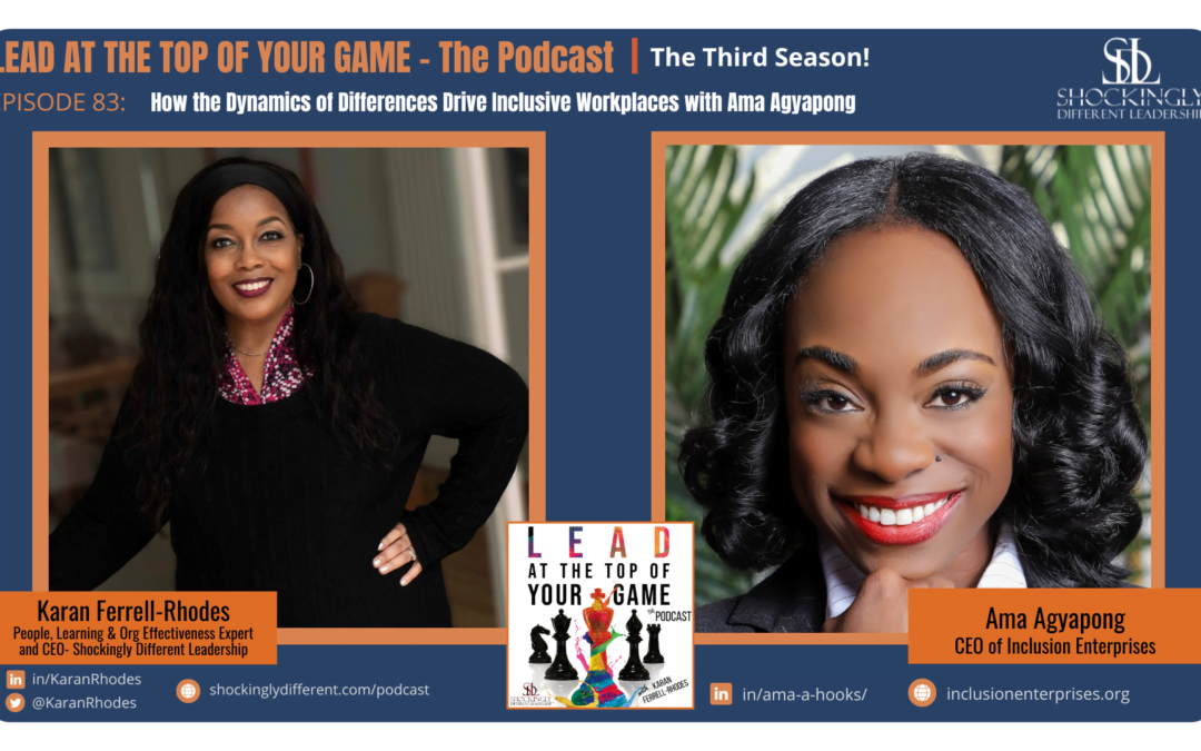 Hello, my friends and welcome back to the podcast and thanks for joining another episode designed to help you better lead at the top of your game. As you know for season three each month we’re featuring leaders who have fascinating roles in a particular profession or industry. And today’s episode is part of our special series featuring leaders who focus on fostering inclusive workplaces. And now enjoy the show. Hello, my superstars and welcome back to another episode of the leader the top of your game podcast. We are so pleased to have on today’s show. I’m gonna get set up slowly so I pronounce her name right Ama Agyapong. Agyapong… real quick, so