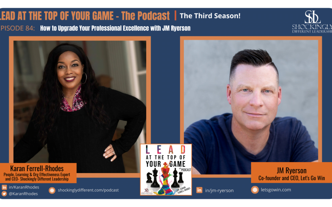 Welcome back to the podcast everyone. And thanks for joining another episode designed to help you better lead at the top of your game, guys, you know for season three. Each month we’re featuring leaders who have fascinating roles in a particular profession or industry. Today’s episode is part of our special series featuring leaders who focus on an aspect of sales performance. And now enjoy the show. Hey, they’re superstars. This is Karen and welcome to another episode of the lead at the top of your game podcast. We are so pleased to have on today’s show, JM Ryerson is the co founder and CEO of Let’s Go Win, which is a company that’s really focused on helping leaders and entrepreneurs be their best selves. And as you know, that’s what we’re focused on on the show is helping you to lead at the top of your game. He is also the host of a podcast of the same name call Let’s Go Win. And he has a recent book called Upgrade: The Only Way Leaders Can Win in a World Moving at Lightspeed. And I need to devour that immediately. So let me tell you about that. So I’m sure he’s going to give us more details. He has a lot of tips that he wants to share with you. So let’s officially welcome JM to the podcast. So welcome, Jay. And good morning to you.